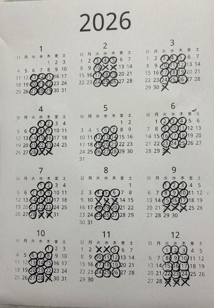⭕️のついた日がお稽古日です